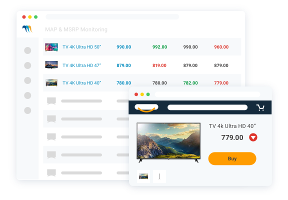 Monitorización de precios recomendados de distribuidores y detección de infracciones mediante identificación de vendedores. + Monitorización de MSRP & MAP