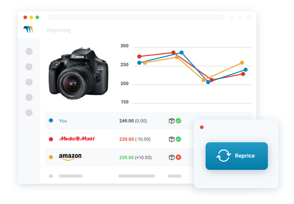 Sistema de fijación de precios continuo en base a reglas de negocio y evolución de precios de la competencia. + Repricing